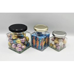 4oz (130ml) square jar supplied with 53mm gold metal lid.