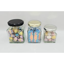 12oz (270ml) square jar supplied with 63mm gold metal lid.